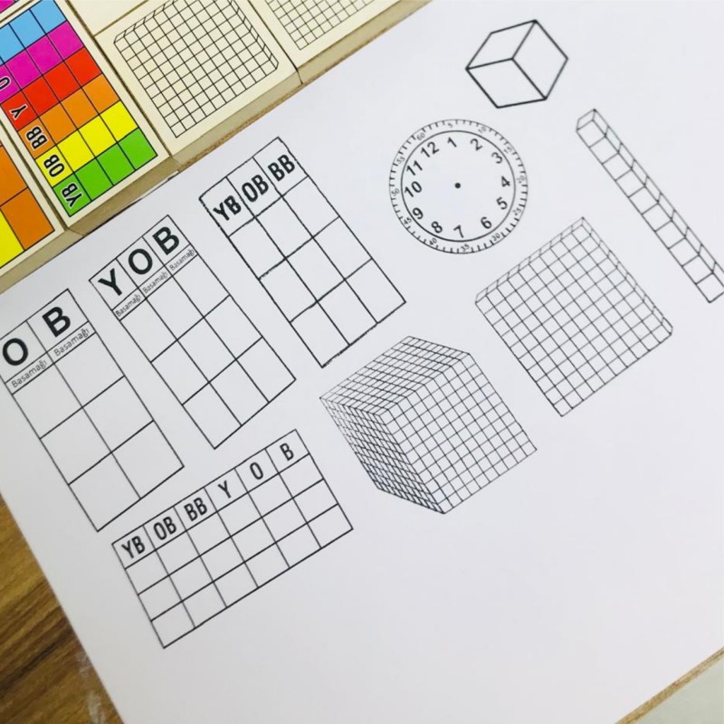Eğitici mühür seti, öğrencilerin temel matematik kavramlarını eğlenerek öğrenmelerini sağlayan pratik bir öğretim materyalidir. Basamak değeri tabloları, saat modeli, geometrik şekiller ve birim küpler sayesinde çocuklar soyut matematik konularını somutlaştırarak kolayca kavrar. Tekrar kullanılabilir yapısı ile öğretmenler, özel eğitim uzmanları ve ebeveynler için ideal bir eğitim aracıdır.