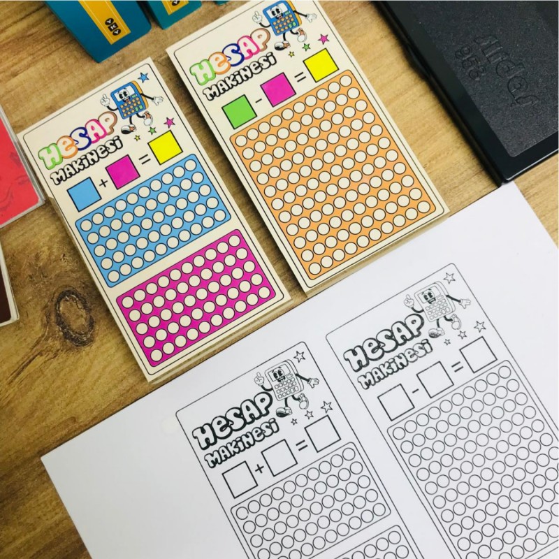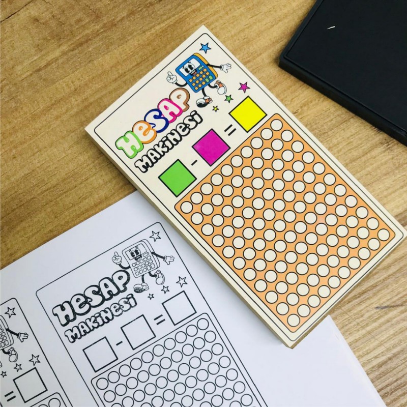 Hesap Makinesi – Toplama ve Çıkarma Eğitici Mühürü, çocukların temel matematik işlemlerini somutlaştırarak öğrenmelerini sağlayan eğlenceli ve öğretici bir materyaldir. Çalışma kağıtlarına basıldığında öğrenciler nokta alanlarını sayarak verilen miktarları belirler, toplama ve çıkarma işlemlerini uygulayarak sonucu bulur ve işlem mantığını adım adım kavrar. Görsel ve uygulamalı yapısı sayesinde matematik öğrenimi daha anlaşılır, kalıcı ve keyifli hale gelir.